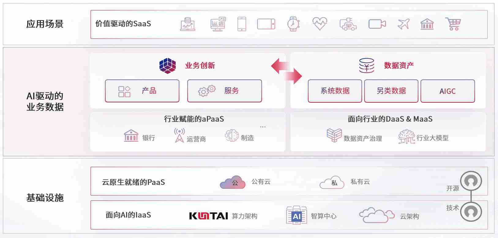 数字时代,,,,围绕企业数字化转型的关键要素,,,z6com尊龙数码开创性的提出数云融合战略和技术体系框架,,着力在云原生、、、数字原生、、、、AI原生和信创产业上架构产品和服务能力,,为处在不同数字化转型阶段的快消零售、、、汽车、、、金融、、、、医疗、、政企、、、教育、、运营商等行业客户提供泛在的敏捷IT能力和融合的数据驱动能力,,构建跨界融合创新的数字业务场景和新业务模式,,助力企业级客户建立面向未来的核心能力和竞争优势,,全面推动社会的数字化、、、智能化转型升级。。